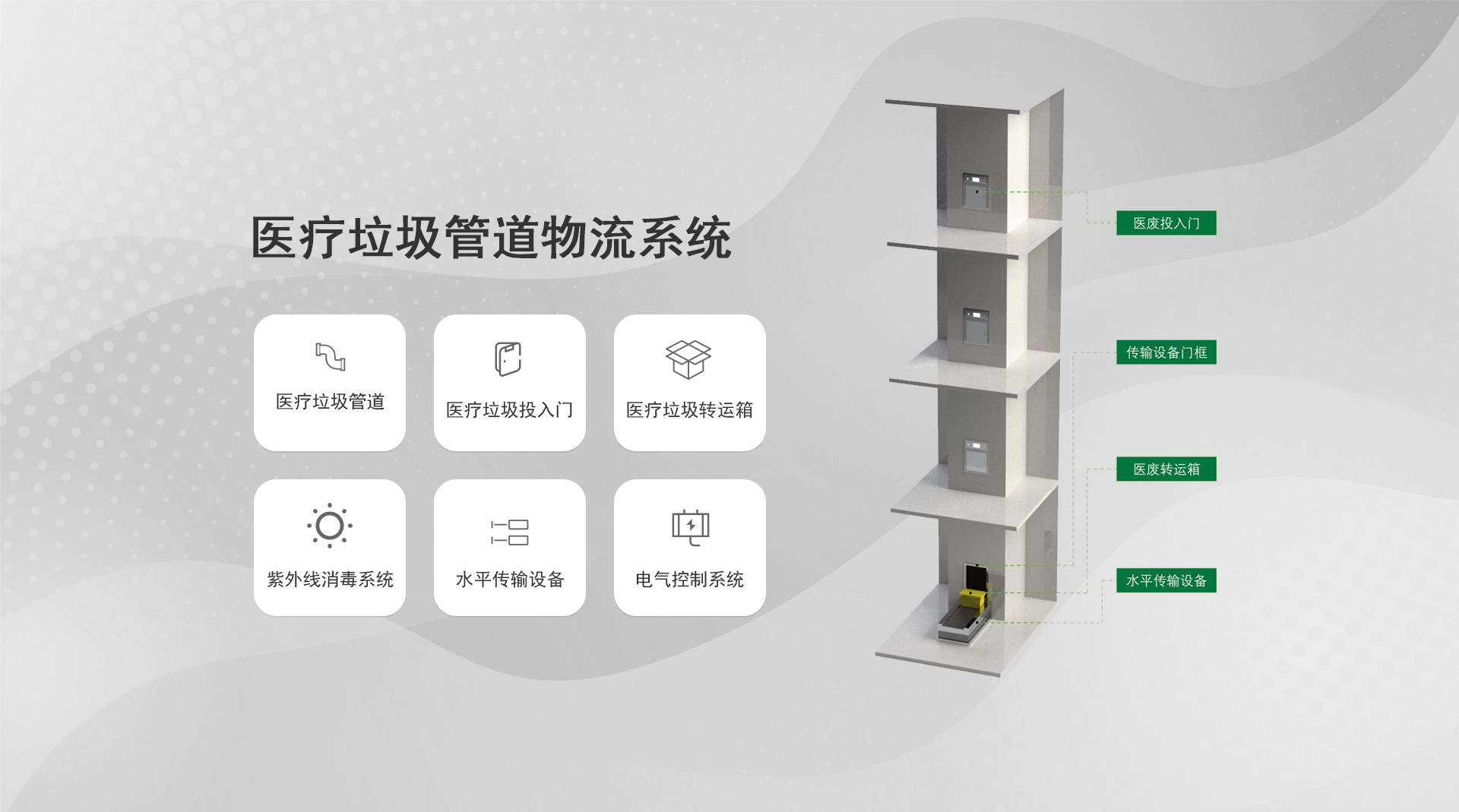 系統(tǒng)簡介:通過氣力式輸送管道對醫(yī)院內的垃圾和污衣被服進行收集,是一種對垃圾實行全封閉、壓縮化、集裝化收運的現(xiàn)代垃圾運輸及匯集方式...